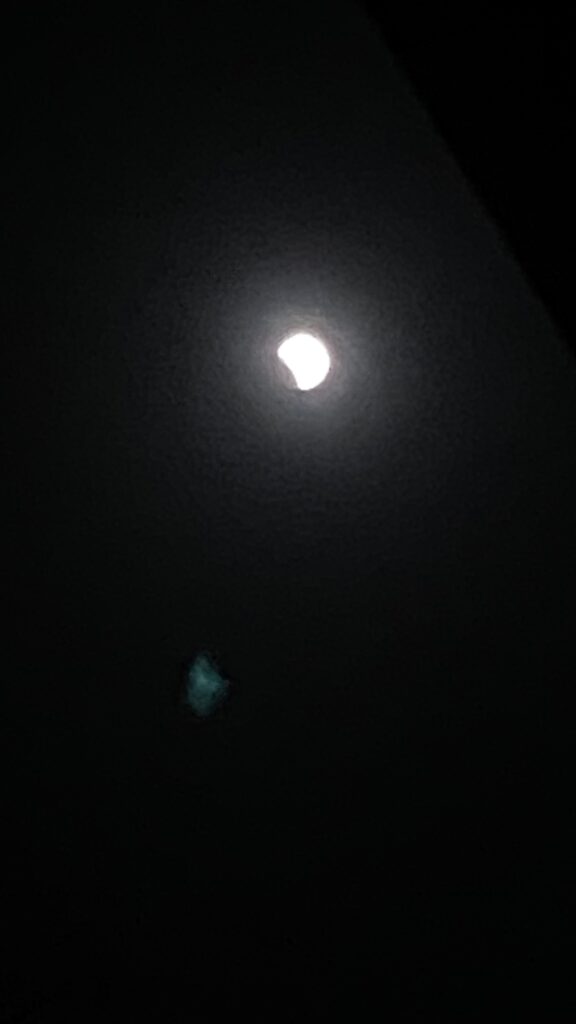 スマホではきれいには撮れませんでしたが、月が欠けている様子だけは写真に残すことができました。
